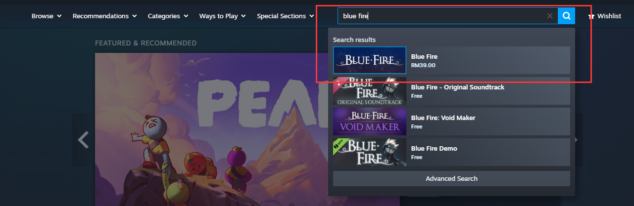步骤6:成功充值到您的账户余额后,返回主页,搜索[Blue Fire]并选择游戏。