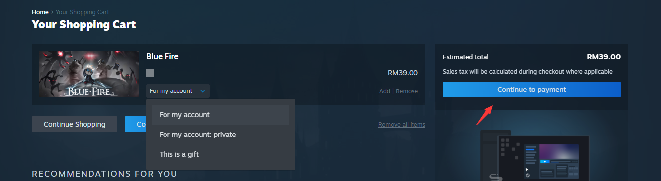 步骤9:选择为自己还是朋友。然后,单击[继续付款/Continue to Payment]。
