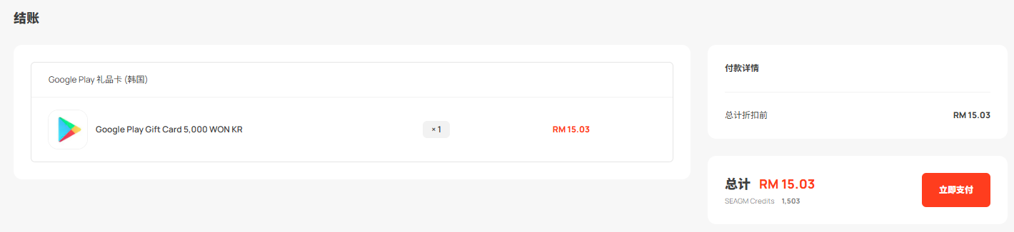 - SEAGM 所售的 Google Play 礼品卡为 区域货币锁定 卡, 请确保购买礼品卡区域与您注册的 Google 账户区域一致。