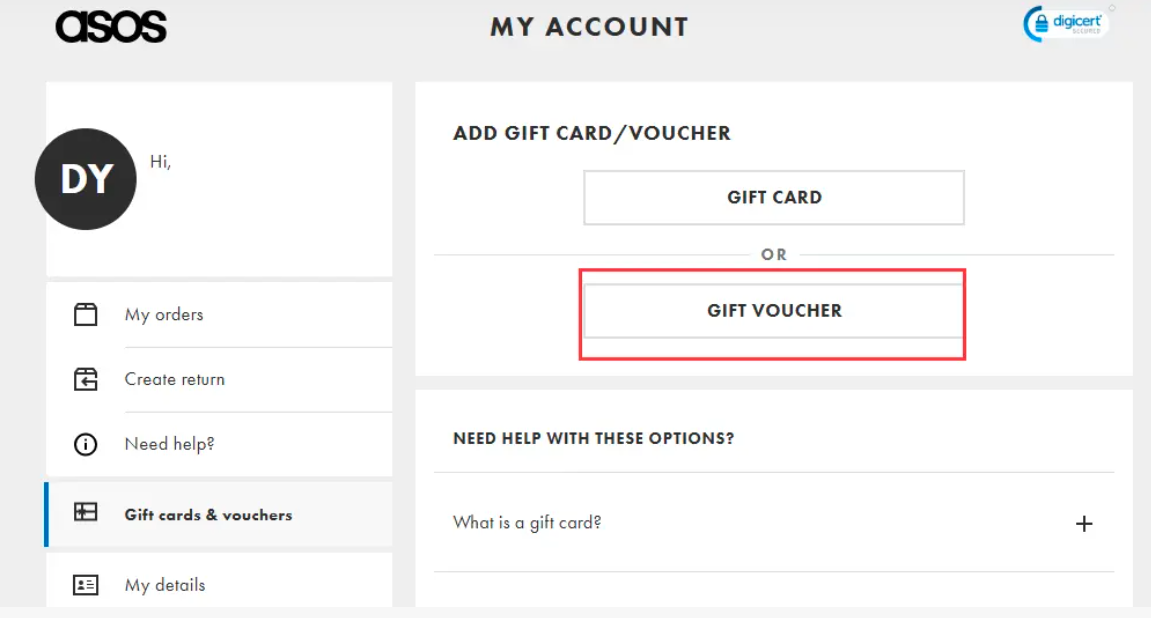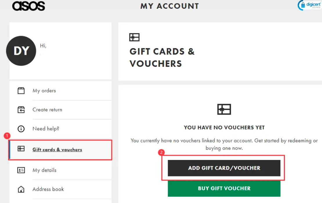 步骤 4: 选择 [gift cards & vouchers],然后点击 [Add gift card/voucher]。
