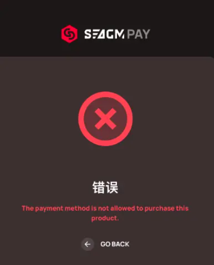 在购买商品时,您可能会遇到以下错误提示: “此支付方式不允许购买此产品/The payment method is not allowed to purchase this product.”