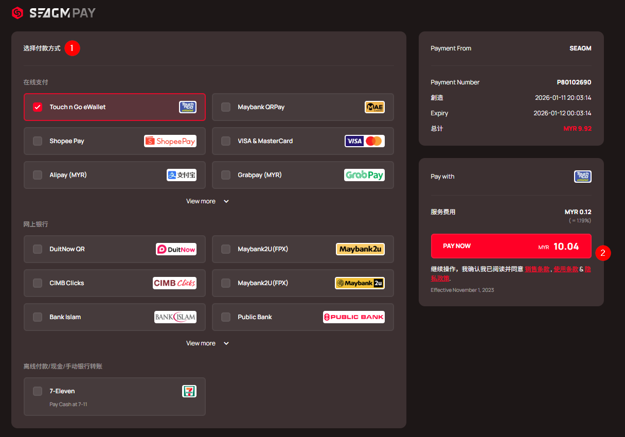 注意:在 SEAGM 中购买的所有商品一旦交付,将不可退货、不可更换、不可退款。