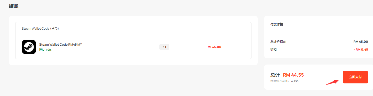 第 4 步:请确认所选的金额和数量,确认后点击“立即支付”。