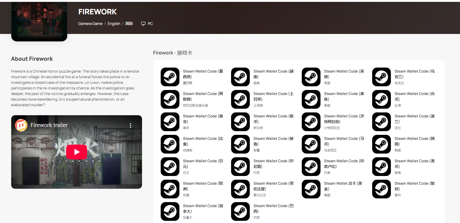 《烟花》是一款中国恐怖解谜游戏。故事发生在一个偏远的山村。一场在葬礼上意外引发的火灾,迫使警方重新调查一桩已经结案的屠杀案。新人警察林立勋因缘际会参与了这次重新调查。随着调查的深入,受害者的过去逐渐浮出水面。然而,案件变得愈发扑朔迷离——这是超自然现象,还是一场精心策划的谋杀?
