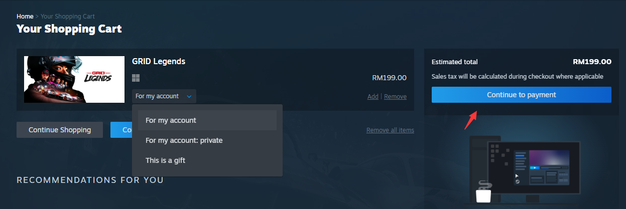 步骤9:选择为自己还是朋友。然后,单击[继续付款/Continue to Payment]。
