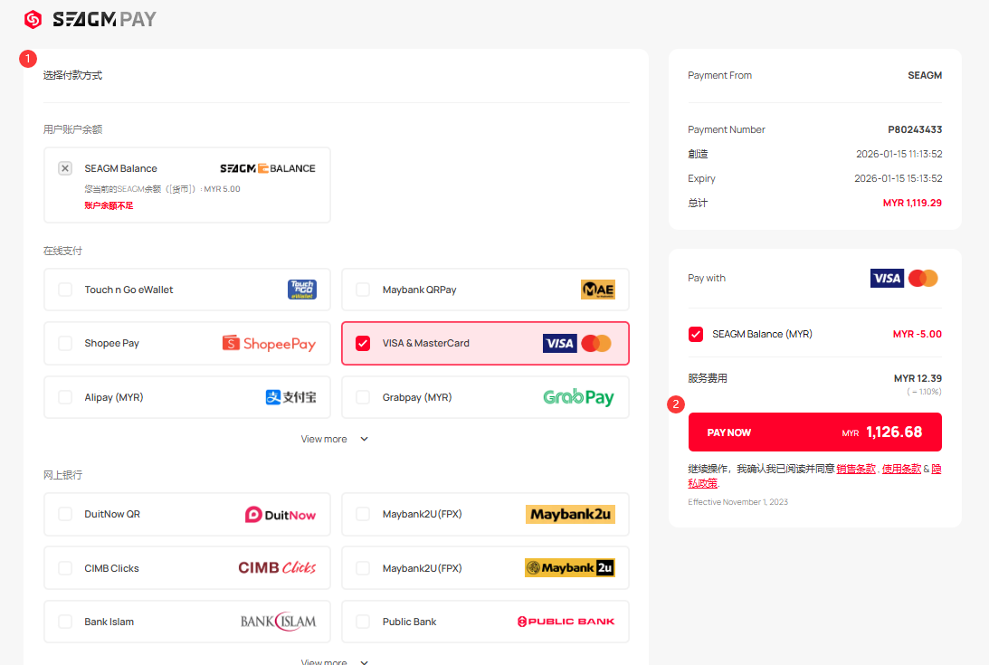 第 4 步:选择您需要的付款方式,点击“Pay Now”即可完成付款。