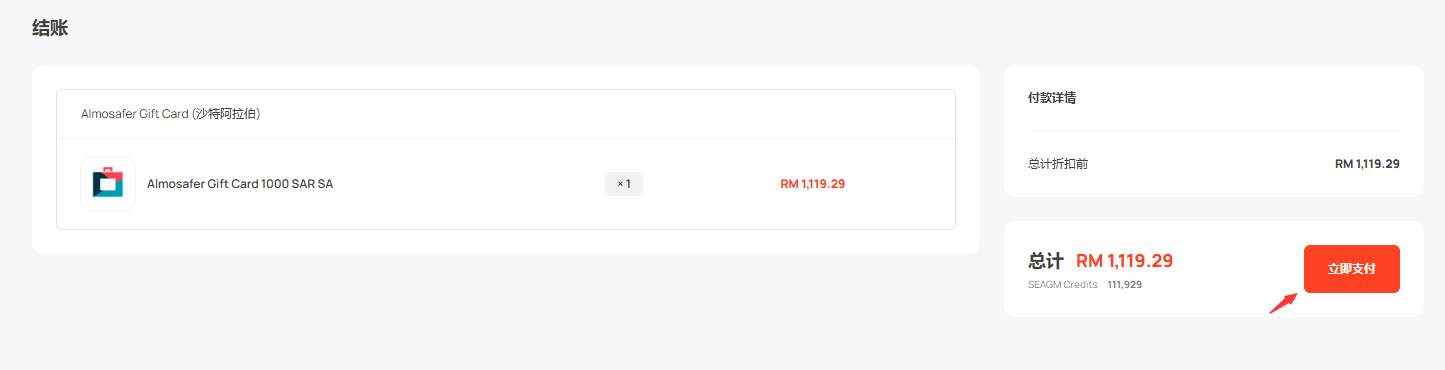 重要提示:SEAGM 所售的Almosafer 礼品卡属于地区限制卡。请确认了才购买。在 SEAGM 中购买的所有商品一旦交付,将不可退货、不可更换、不可退款。