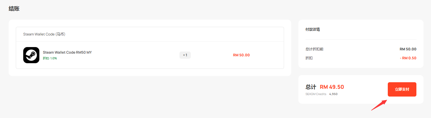第 4 步:请确认所选的金额和数量,确认后点击“立即支付”。
