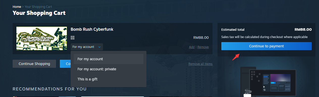 步骤9:选择为自己还是朋友。然后,单击[继续付款/Continue to Payment]。