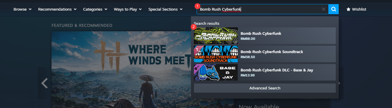 步骤6:成功充值到您的账户余额后,返回主页,搜索[Bomb Rush Cyberfunk]并选择游戏。