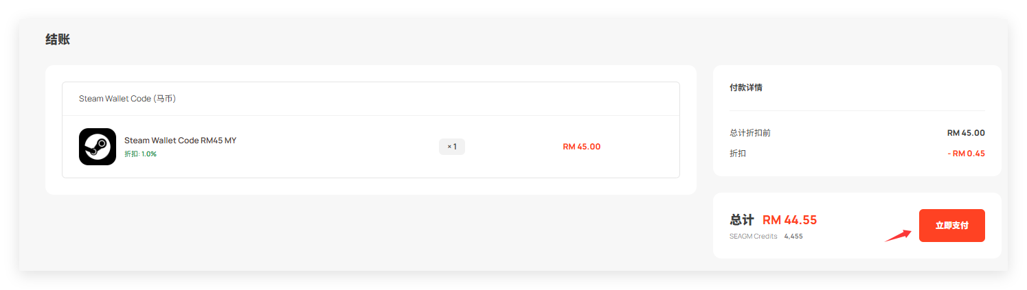 第 4 步:请确认所选的金额和数量,确认后点击“立即支付”。