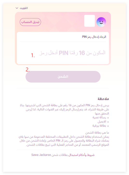 步骤 3: 输入从 SEAGM 购买的充值码,然后点击 [الشحن]。