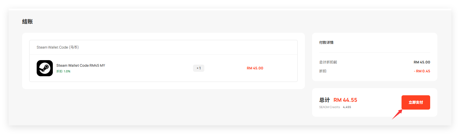 第 4 步:请确认所选的金额和数量,确认后点击“立即支付”。