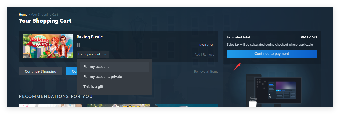 步骤9:选择为自己还是朋友。然后,单击[继续付款/Continue to Payment]。