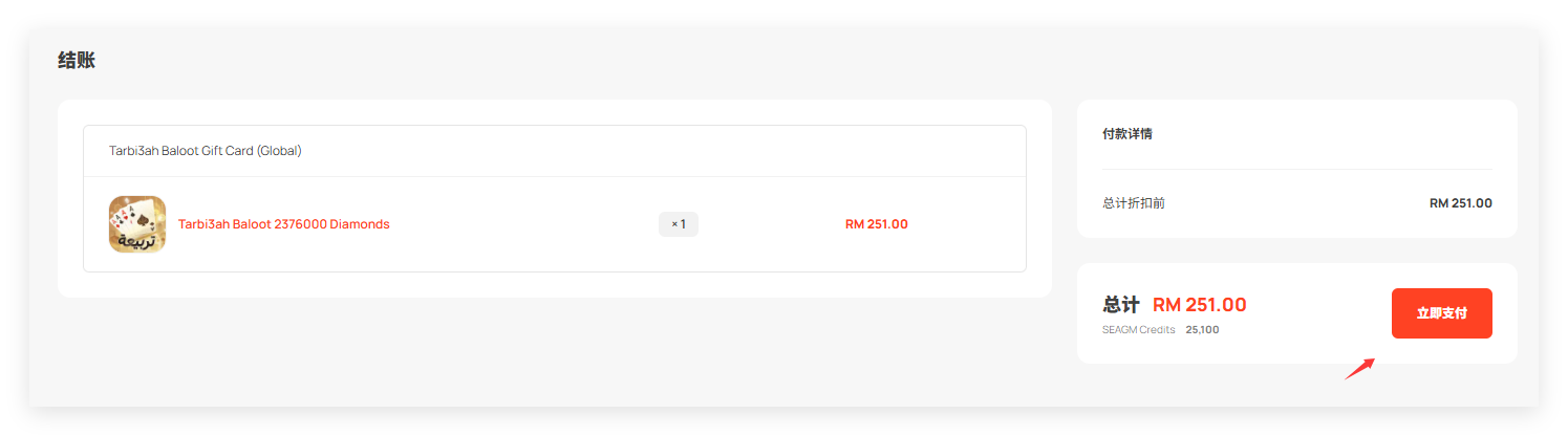 第 3 步:请确认所选的金额和数量,确认后点击“立即支付”。