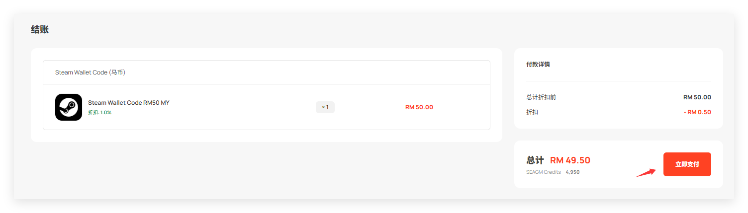 第 4 步:请确认所选的金额和数量,确认后点击“立即支付”。