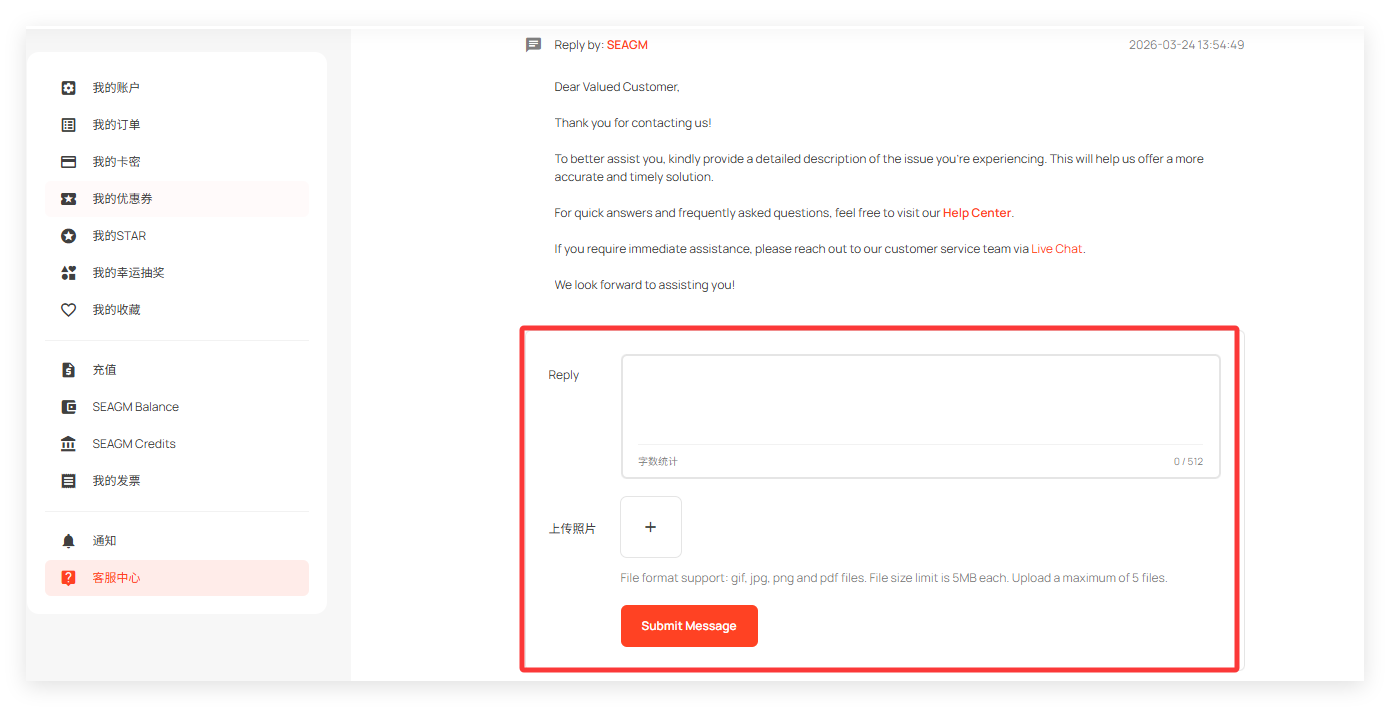 需要查看您在 SEAGM 的ticket回复吗?按照以下简单步骤即可快速查看更新并回复客服: