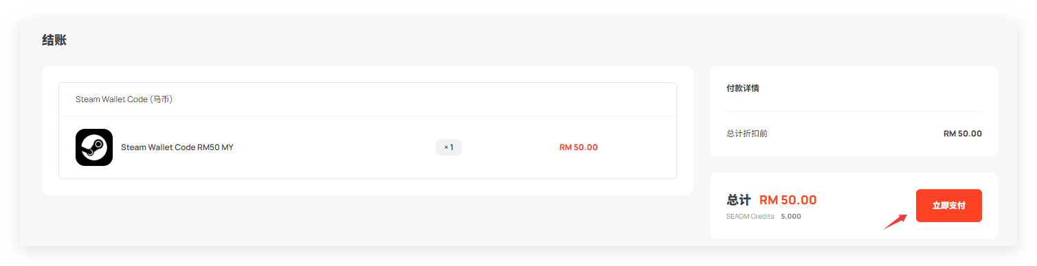 第 4 步:请确认所选的金额和数量,确认后点击“立即支付”。