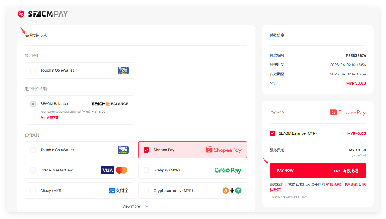 第 5 步:选择您所需的付款方式,然后点击“立即支付”完成付款。