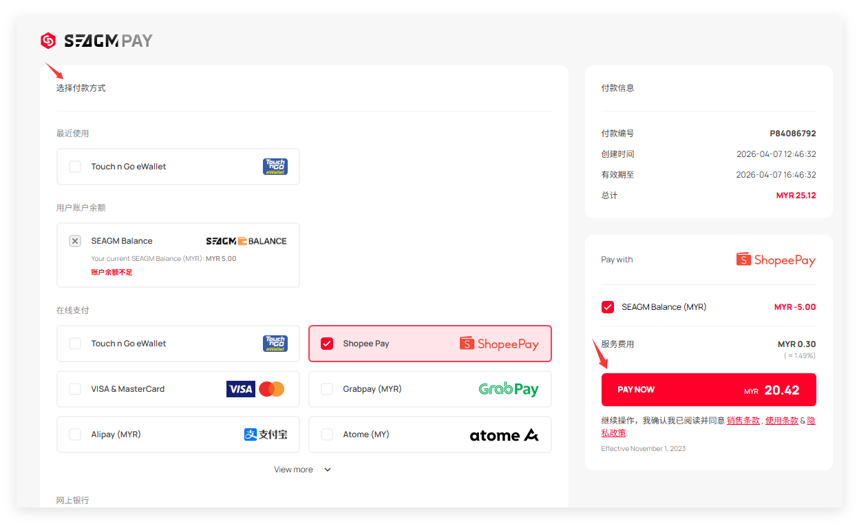 第 4 步:选择您需要的付款方式,点击“Pay Now”即可完成付款。