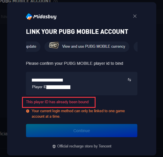 5. 我无法将我的玩家ID链接到我的Midasbuy帐户,我该怎么办?